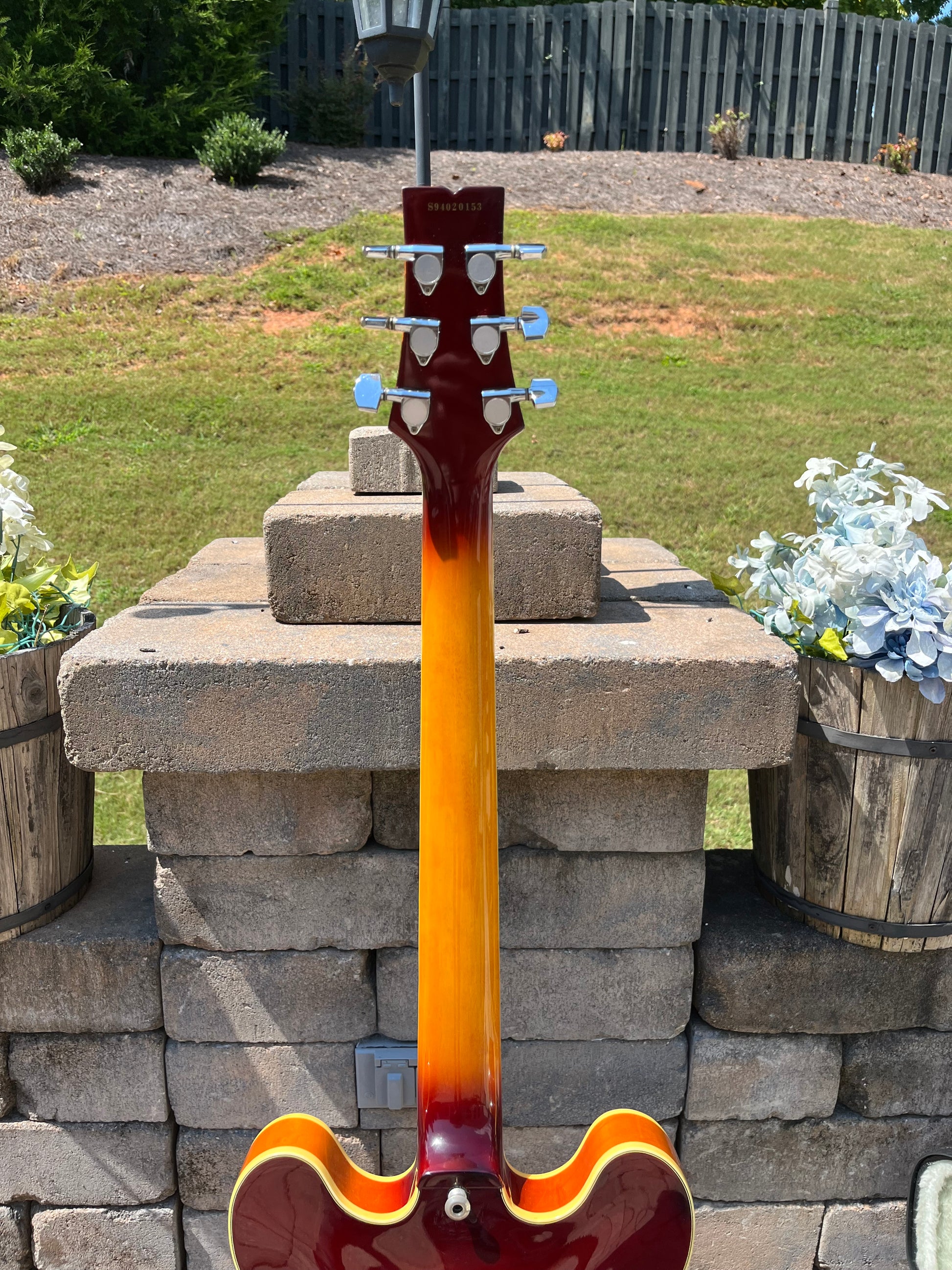 Up for sale is a 1994 Ibanez Artstar hollow body electric guitar made in Korea. This guitar in particular AS 80 Model. Top left hand side of the guitar has Jerry Reeds signature is what I was told from the original owner as this was just bought from the original owner. Guitar sounds good when plugged up not showing a whole lot of signs from having ever been played. Set neck hollow body with the sunburst finish, abalone in lay make this guitar truly show off. Hardshell case will be included in the sale but I can not say for certain that itβs the original case but does appear to be.