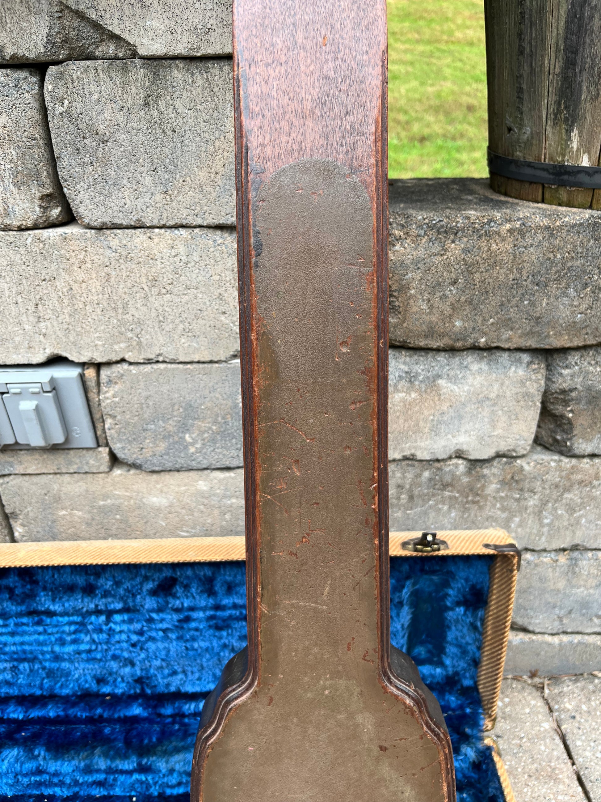 Vintage Fender Deluxe Lap Steel made in 1947. This Lap Steel was number 952 meaning it was the 952 Lap Steel made by Fender, Talk about a true relic right here! Simple wood grain natural finish for these steels when they first started out as the years progressed they become more extravagant. Metal show tarnish and slight corrosion from over the years but goes along well with the character of this instrument. Typical play wear around the body and back. A few tuners shafts but they do all rotate. Original Hardshell case is included in the sale.